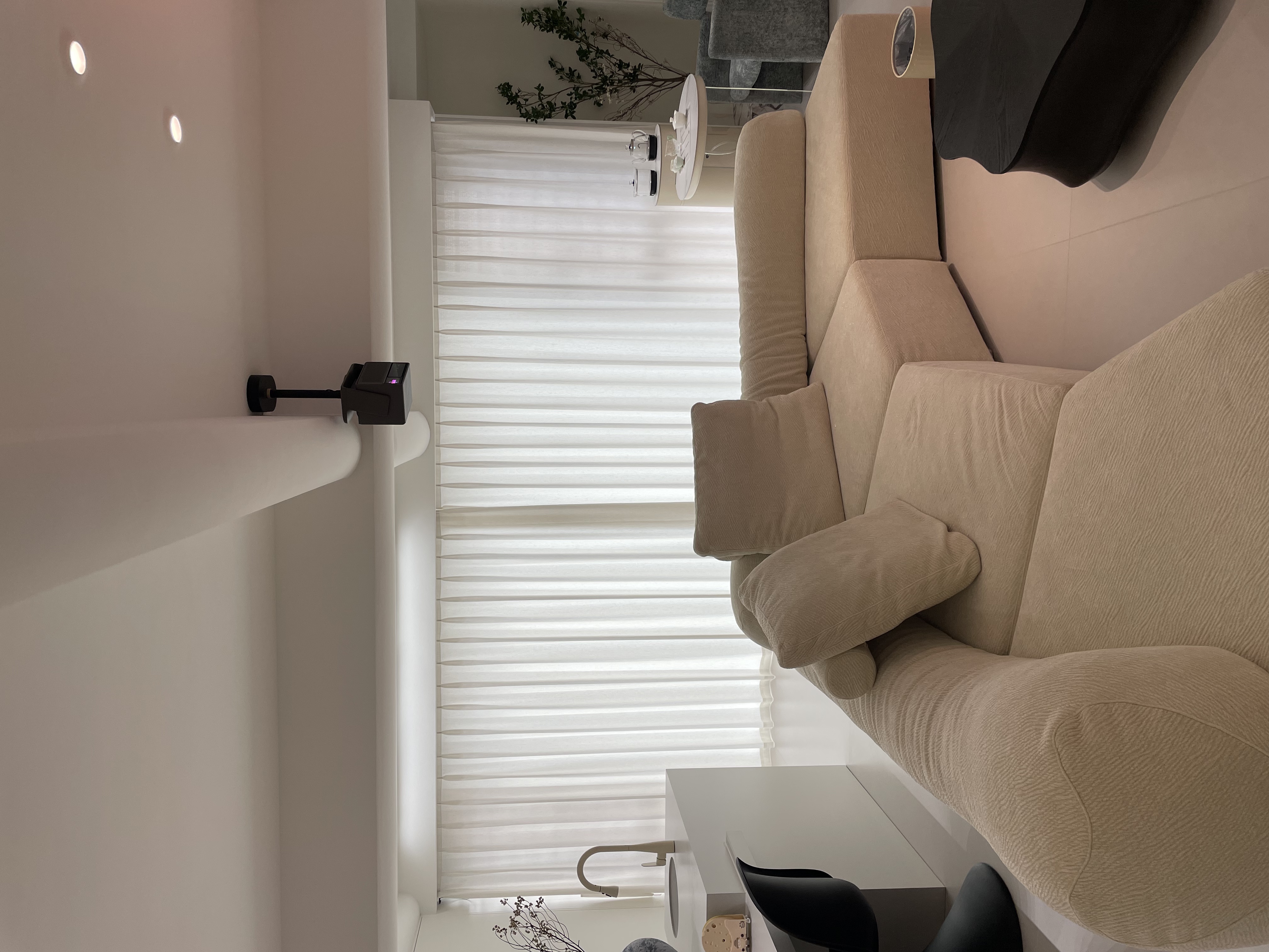 客厅区域做了去客厅化设计,整个大横厅集合了观影、会客区、休闲区、就餐区等等功能,空间搭配上摒弃了繁杂的装饰,以奶油白作为空间的底色,并采用了弧形吊顶+圆润的家具弱化空间的线条,让整个空间奶油感满满。